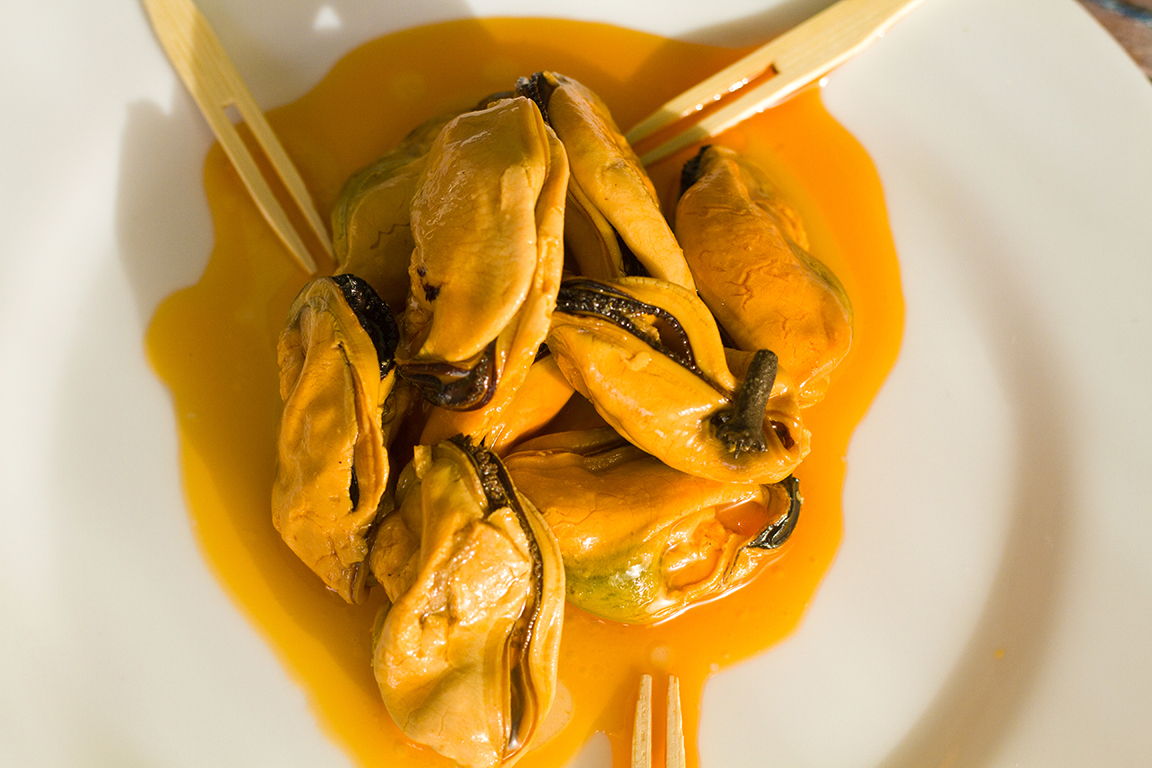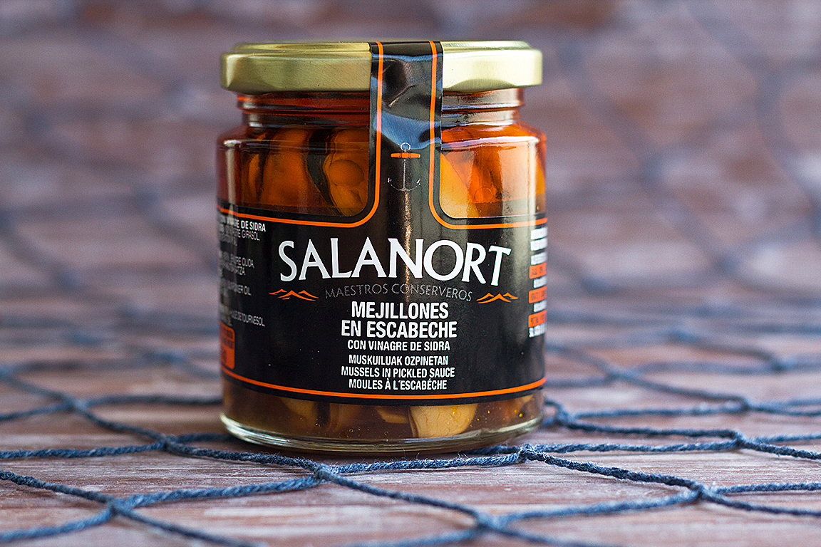 Mejillones extra en escabeche Salanort procedentes de las rías gallegas.